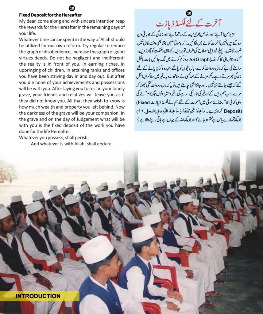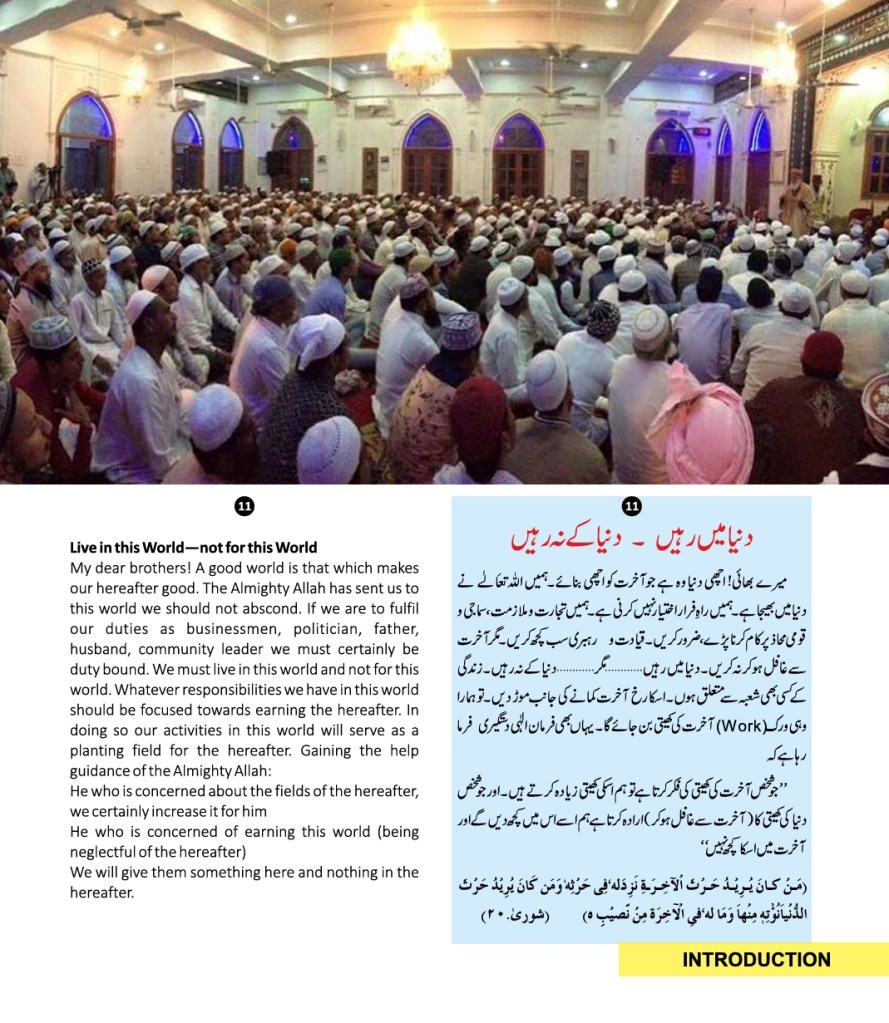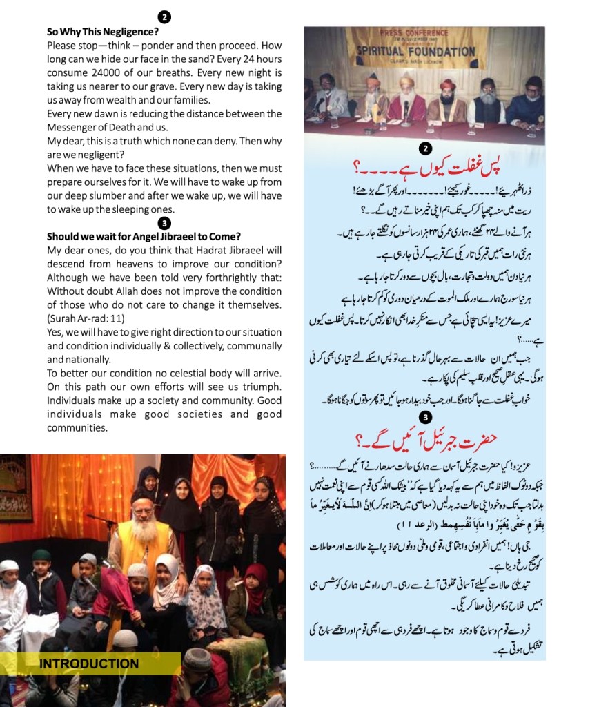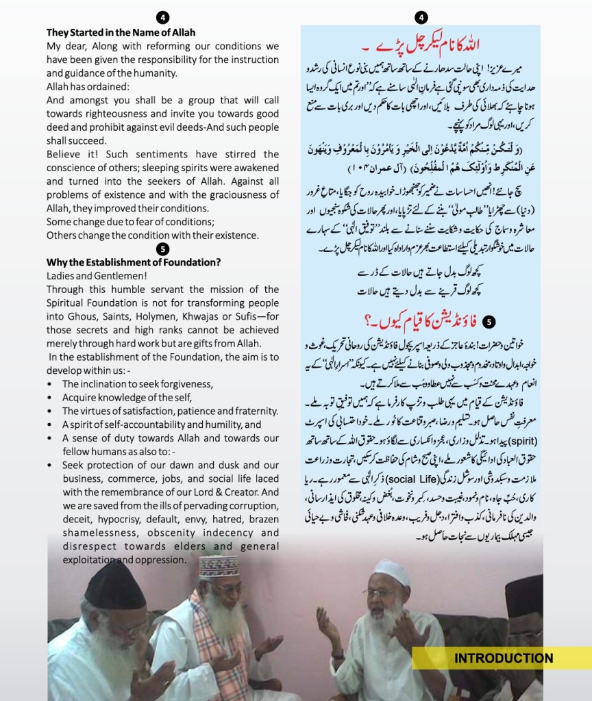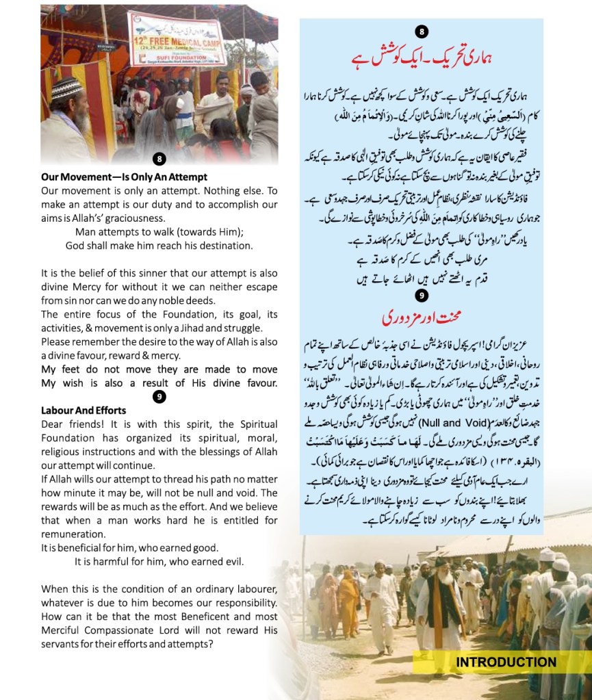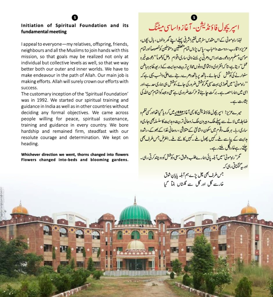All praises are due to Almighty Allah that He provided, Faqir Ashrafi Syed Muhammad Jilani Ashraf Bin Syed Muhamid Ashraf Ashrafi Al-Jilani Kichouchavi (settled in A/451, Indira Nagar, Lucknow, U.P.) with an opportunity to dedicate 28 years of his life to religious activities-propagation, establishing religious institutions, taking corrective and constructive measures for guiding people, founding organizations, teaching at religious institutions, engaging himself in academic works, Peeri Mureedi (administering oath of allegiance) journalistic engagements, and a host of other social and economic services.